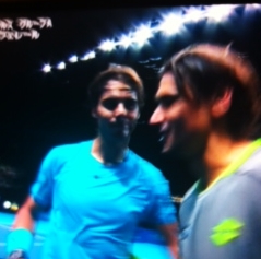 ATPファイナル ATPファイナルのラウンドロビンAグループ、ナダル対フェレイルの対戦は、ナダルが前週のパリのリベンジを果たし6-3.6-2のスコアで勝利した。 フェレイルは、前週の針の穴を通すようなストロークのコントロールがこの試合では見れなかった。 前週のようなパーフェクトな試合をしなければ、ナダルには勝てないということか? 今大会はナダルは決勝まで行くのでは、、、?