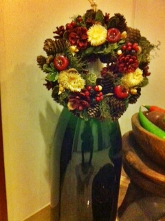 我家の玄関の前には既に、Xmasリースを飾っている。