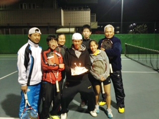 昨日が誕生日だったのに、祝ってあげれなかった スタッフ飯島和信の誕生日を今日、テニスコートで祝った。