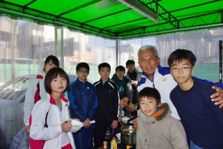 打ち納め会と豚汁会 今日が取り合えず、打ち納め! スタッフが明日より田舎に戻るため、恒例の打ち納めと豚汁会を行った。 30人分の豚汁とおにぎりを用意し、今日集まったジュニア、保護者と一緒にいただいた。 皆が美味しそうに食べていたことに満足! しゅんたママ、スタッフの名村にはおにぎりを作ってもらい、感謝であった。