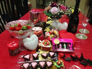 ハッピーバレンタイン バレンタインのチョコで飾られたテーブル。 今日はハッピー バレンタイン! 世の中の男性は、たくさんのチョコをもらったのでは? でも今日は最悪の大雪、もらうはずのチョコレートをもらえなかった男性もいたはずだ?!
