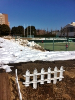 昭和の森はまだ雪化粧 名村の試合が昭和の森であるというので、久しぶりに出かけた。 何と昭和の森はまだ、雪化粧! 「これで試合が出来るのか?」と心配してコートをチェックしたら雪をコートの角に積み上げ試合を行っていた。 皆、本当にテニスが好きなんだね! でも、「大変だっただろうな!」と雪掻きをした方々の苦労をつい思いやってしまった。