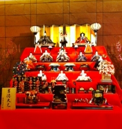 雨ばっかり! 冷たい雨が今日も一日中降っていた。 サーフェスがハードコートだと、小雨でも降り続けばコートが濡れ テニスは出来ない。 いつ出来るか、いつ出来るかとテニスコートの側でイライラしながら待っていた。 結局は出来ず終い。 そう言えば 明日は、ひな祭りだよね。 ホテルオークラに七段飾りのお雛様がディスプレイされていたよ!