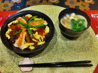 ハッピーひな祭 今日は仕事で 帰りが遅かったので、家族でひな祭りを祝えなかった。 「あー、ちらし寿司はいただけないのかな?今日は!」と思いながら家に戻った。 何とちゃんと用意がしてあった。 ハッピーひな祭り!