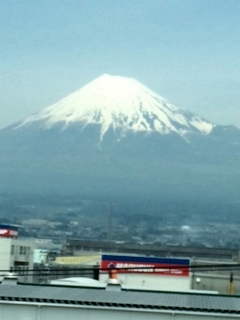 新幹線の中から もう東京に向けて帰っている。 今日はとても天気が良く、青空が広がっている。 新幹線の中から、くっきりと富士山が見える! 「富士は日本一の山」という歌の歌詞があるように、堂々として立派だ。 世界遺産になったし、益々誇らしげに見える。 俺も、富士山のように 立派に堂々としていたいよね!