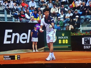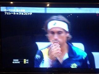 準々決勝の好カード、ジョコビッチ 対 フェレイルの試合を見ている。