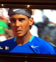 第1セットはナダル、第2セットはジョコビッチが取り、現在1ブレイクアップでジョコビッチが3-1リードでナダルのサーブ!