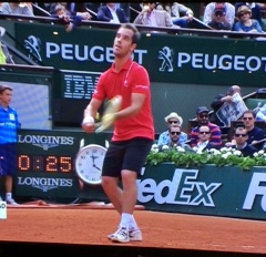 フレンチオープン5日目 フランスのガスケ対アルゼンチンのベロックの対戦。 暫く怪我で練習不足を懸念しているガスケだが、ショットは切れてはいるし、調子も悪くはないと思う。 また、ベルログの調子も良く、試合は極めて面白い。 両手打ちバックハンドのプレーヤーが多い中、片手打ちバックハンドの対決と言う意味でも、見ていて楽しい。 ガスケは、練習不足からくる、大切なポイントでの不安が少し出ている気がする。 とにかく接戦ななることは間違いない! (ベロック) (ガスケ)