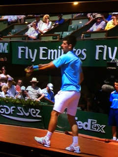 男子準決勝戦 ジョコビッチ 対 グルビス戦は、ジョコビッチの確実なサーブゲーム、ミスのないリターンとストロークに対してグルビスは 我慢が出来ず、ミスが多く、そこをジョコビッチが上手く突いた。