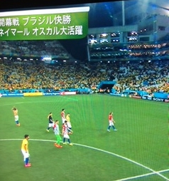 サッカー、ワールドカップがスタートした 世界最大のスポーツイベント、ワールドカップがプラジルで開幕された。 サンパウロのスタジアムでの開幕戦はもちろん、地元ブラジル 対 クロアチア戦。 期待のネイマールらの活躍で、クロアチアを逆転、3-1で勝った。 スタジアムは黄色で埋め尽くされ、大迫力であった。 開催前、ストライキ等で開催に不安なニュースも流れていたが、とにかく無事にワールドカップがスタートを切った!