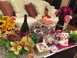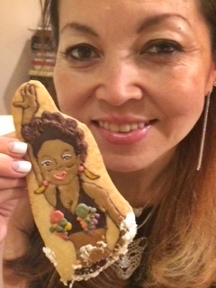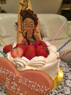 ハッピーバースデイ、ママ! 今日はワイフの誕生日。 娘が取り仕切り、リビングにケーキをはじめ 素敵なディスプレーをしてくれた。 帰りは仕事で遅くなったが、ハッピーバースデー、ママ! 似てませんか? このクッキー、ママにそっくり!!!