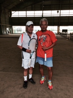 佐賀の最終日 佐賀の最終日は、上村先生をはじめとする仲間の方々とテニスをして楽しんだ。 台風が関西方向に流れ、佐賀はラッキーにも雨は降らなかった。 そのお陰で、平松先生のテニスクリニックも昨日 無事終えることができたし、今朝も上村先生ともテニスを楽しめた。 ラッキーにも、飛行機は遅れはしたものの、欠航にならず、東京に戻れた。 佐賀より、東京の方が台風の影響を受けてしまったようだ。 でも、俺もちょっと疲れたみたい!