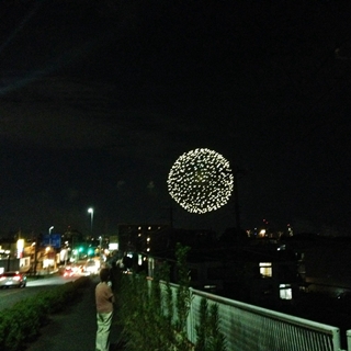 二子玉の花火大会 毎年恒例の二子玉と川崎の花火大会。 行く夏を惜しむように?毎年8月の終わりに行われている。 今日がその花火大会であった。 240テニスカレッジから歩いて4,5分の所に小高い丘があり、Lessonの途中で花火見物に行くことも恒例となった! 上手くは撮れなかったけど、花火の写真です。 どう、美しいでしょう?!