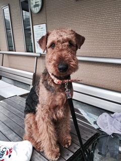 ジェイが机の上で... 240テニスカレッジに時々遊びに来る、エアデールテリアのジェイ。 そのジェイが机の上に乗って、練習を観戦。 寒いから、地べたに寝そべるのは嫌だったのかな、、、、? でも動物って、本当に愛くるしいね!