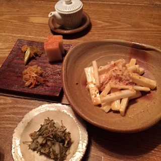 お蕎麦屋さんでのつまみ、うどの酢味噌和え。