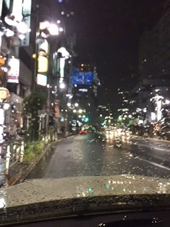 深夜の雨の五反田 西尾倶楽部を終えて、品川プリンスホテルのインドアコートを出たら24時をすでに回っている。 五反田を通って車で家に戻るのだが、結構な雨だ。 車のフロントガラス越しに撮った 雨の五反田だが、何となく良い感じじゃない?