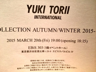 いつもお世話になっているトリイユキさんの秋冬コレクションのショーが行われた。