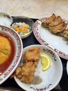 ランチは王将で 今日のランチは王将でいただいた。 久しぶりの王将でのメニューは、天津飯定食。 天津飯と餃子、サラダ、鳥の唐揚げ、そしてスープ。 値段もリーズナブルで美味しかった! ただ、しばらくして胸焼けを起こした。 少し、オイリー過ぎたのかな? 歳だってこと?