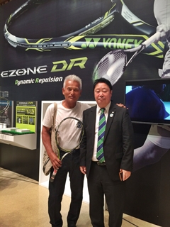 ヨネックスの展示会 ヨネックスの展示会が品川で行われており、行ってきた。 ワウリンカのフレンチオープン優勝の影響もあったのか、多くのお客様が来られていた。 大学時代にテニスコートで戦ったことのあるヨネックス社員の金増君と久しぶりに会い、2ショット。