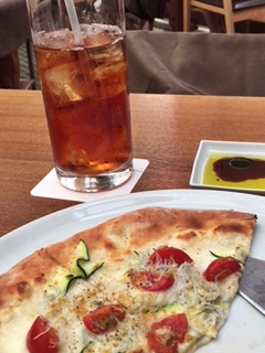 普段は食べないピザを、お好み焼感覚で食べてみる。