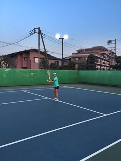 240テニスカレッジに新しいライトが 合宿中、240テニスカレッジに新しいナイター設備が新設された。 早速、ナイターを試してみると以前と比べ断然明るく打ちやすい! オ-ナーの井田さんからコートを借り受けて10年目になるが、場所、環境、設備等、 今のテニスカレッジに満足しているし、感謝している!!