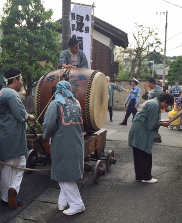 長尾町のお祭り 240テニスカレッジの所在地である、久地の長尾町は今日秋祭りであった。 神輿太鼓を大勢の人が綱で引っ張り、町内をねり歩くという行事を行っていた。 神輿太鼓が移動する度に、太鼓を叩き 大きな音を出していた。 毎年恒例の行事なのだが、花火同様、良い風習である。