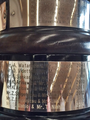 東京ローン チャンピオンシップの優勝セレモニーは、その年のクリスマスパーティーの時行われるのだが、昨年はクリスマスパーティーに参加できなかったので、トロフィーをまだ、いただいていなかった。