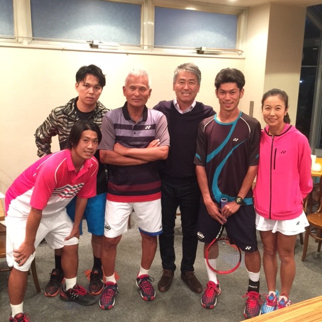 同級生でもあり、元ライバルでもあり、良きダブルスのパートナーであった坂本真一プロと240テニスカレッジのスタッフの写メ。