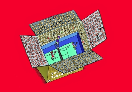 山口マサルさんから送られてきた 漫画家の山口マサルさんが送ってきた、素晴らしいイラスト。 マサルさんはご自身もテニスをなさるから、テニスをする人の気持ちがわかるのだろう?! こんな素敵な箱の中に作られたテニスコートで昔のように沢山の人の前で 思い切りテニスがしたいと、つい思ってしまう!?