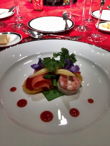 20日の240クリスマスフェスタ 33回目の240クリスマスフェスタを20日にグランドハイアットで催すことは、以前のブログで報告したと思う。 もう33年も続いたのかと思うと自分でも驚きだ。 このパーティーは余興も素晴らしいが、食事が美味しい! スタートの前菜から信じられない位、美味しい! 下の写真でわかるかな?
