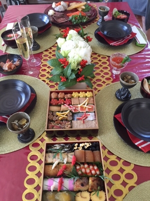 明けましておめでとうございます 明けましておめでとうございます。 ことしもよろしくお願いいたします。 我家の玄関の正月のディスプレイです。 今年はワイフが一生懸命習って書いた謹賀新年の書を飾ってみました。 やはり、日本の正月と言えば おせちだと思います。 今年も 大好きなおせちを家族で頂きました。