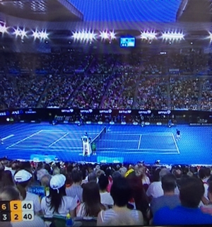 ラオニッチから6-4.5-7.7-6.4-6とあと1セットでというところまでいったが、足の付け根を痛め ビッグ アプセットとは ならなかった。