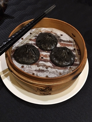 ご馳走になったトリュフの小龍包 スーツァンレストラン・陳で真っ黒い小籠包を菰田料理長からと言って、ご馳走になった。 小籠包のイメージから程遠く、少し引き気味に口に入れたが、トリュフの香りに包まれた小籠包は、本当に贅沢で美味しかった。 トリュフをふんだんに使っているため商品としては採算も合わないようで、「趣味で作った」という事で、 ご相伴にありついた形となったようだ。 このようなサプライズはいつでもウェルカムですよ!!