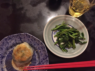 「せめて、美味しいものを」と思い、ニラ饅頭と空芯菜の炒め物を食べた。