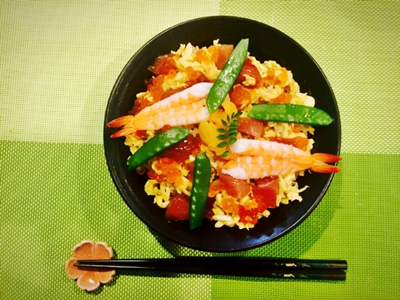 恒例のちらし寿司とデザートに抹茶と桜餅を出してもらった。