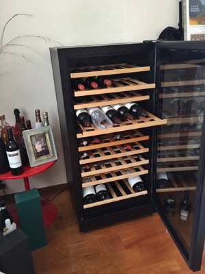 新しいワインセラー 前々から 頂いたワインをどの様に保管したら良いのか?と危惧していた。 放置していたら良いワインもダメになってしまう。 ようやく、新しいワインセラーを購入し、ワインをその中に入れたてみた。 入りきらなくなったワインたちが喜んでいるような気がした。