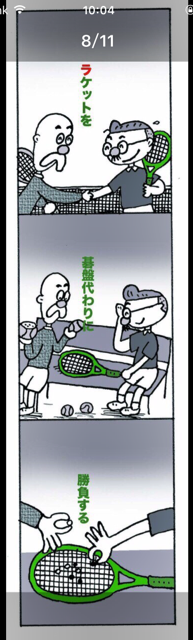 山口マサルさんからの3コマ漫画 明治製菓の「おやつはカール」のTVコマーシャルの製作者として有名な山口マサルさんは、テニス愛好家。 今でも仲良くしてもらっている。 その山口さんから3コマ漫画が送られて来た。 どう?