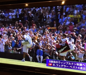 フェデラーがチリッチを破りベスト4へ フェデラーがチリッチの素晴らしいプレーに、崖っ淵まで追い込まれた。 しかし、フェデラーは、その度に神がかり的なショットで2セットダウンより挽回、6-7.4-6.6-3.7-6.6-3でチリッチに勝利した! 本当に素晴らしい試合だったし、チリッチのテニスも素晴らしかった。 この試合を見て、感動しない人はいない。 フェデラーがまたウインブルドンで優勝するのかも?と言う期待が持てた試合であった。