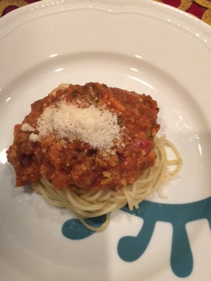 今晩の夕食は、一生懸命作ってくれたミートソース スパゲティーとサラダであった。