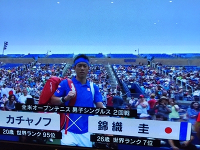 錦織、新鋭 カチャノフに勝利、3回戦へ 錦織は新鋭198センチのカチャノに第2セットこそ苦しんだが、ストロークで圧倒。 勝利を物にした。 カチャノフの198センチから繰り出すサーブと力強いストロークは、今後 注意を必要とするプレーヤーだと感じた。 でも、錦織は素晴らしい。 雨で中断になっても、集中力を切らさない精神力には脱帽。 流石に、世界の一流プレーヤーだ!