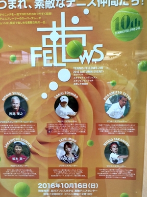 10月16日(日)に催す フェローズのイベントのポスターが、高輪スポーツセンター インドアコート内のフミヤ テニスショップに張り出された!