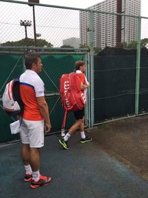 楽天オープンがスタートしたね! 僕は名村の全日本ベテランの試合に同行して名古屋にいるので、今日は楽天オープンが見られません。 240テニスカレッジのスタッフの赤土と飯島が楽天オープンに行っています。 ウキウキしながら写メを送ってくれました。