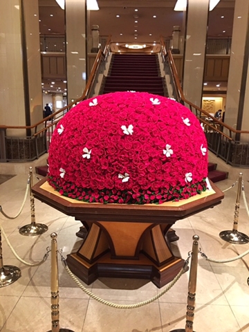 帝国ホテルのバラで出来た クリスマスのディスプレイ。