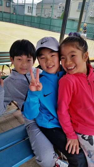 先日行われたコスモジュニアで活躍 トーナメントクラスの謙太、仲悠、莉菜の3人がコスモジュニアテニストーナメントに出場。 仲悠が見事に決勝トーナメントに進んだ。 残念ながら決勝戦では完敗に終わったが、素晴らしい頑張りであった。 謙太は、練習通りの力を出せなかった事が敗因。 莉菜は 運動神経か良いので、長い目で見ている。 これからだろう。 3人とも本当に頑張った!