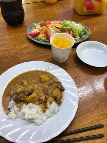 今日の夕食は、僕が作ったスペシャルカレーとサラダ。