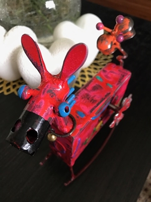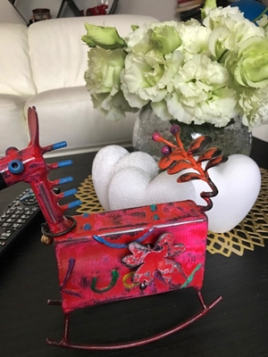 馬のオルゴール この赤い馬は、ハッピーバースデーの曲が流れてくるオルゴールなんだ。 誕生日に、馬から流れる素敵な音色に感動した。 このオルゴールは手作りで、気持ちが入っている。 この馬 、よく見るとおかしな顔でバランスも何か変なんだけど、愛くるしい。 可愛いんだよね!
