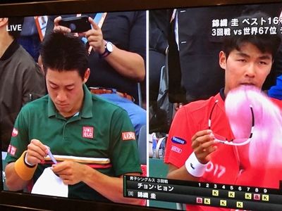 韓国の若手、チョン・ヒョンと対戦している錦織。