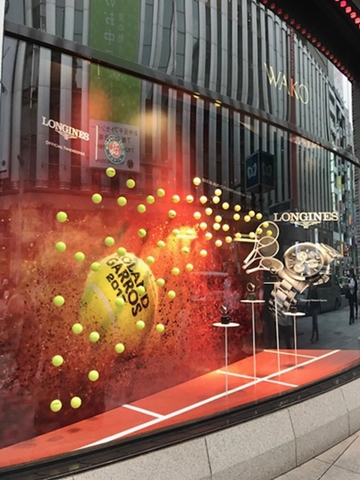 銀座和光にローランギャロス 「銀座の和光にローランギャロスのディスプレイがされている」と、写真が送られて来た。 それ位、日本におけるテニスの認知度が上がったということの表れか? フレンチオープンのオフィシャル ウォッチがロンジン。 その時計のロンジンの宣伝を兼ねて、大がかりなフレンチオープンのディスプレイをしているのだとおもう。 なかなか、素敵じゃないか! もうそろそろ、錦織 対 マレーの試合が始まる。 楽しみだ!