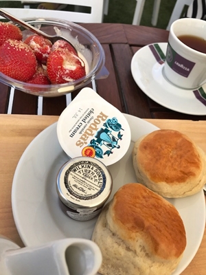 ウィンブルドンでの食事 ウィンブルドンでは最も有名なストロベリー ミルクも食べたよ。 あとは甘いケーキとイングリッシュ ティー、そしてクロテッドクリームとスコーン。 あと、シャンパンからあれば最高なのだが....? 僕があまり飲めないので。