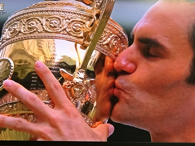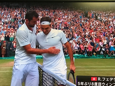 フェデラー完勝 8度目の優勝! ウィンブルドン、男子シングルスの優勝は やはりフェデラーであった! フェデラーは好調のチリッチを完璧なまでにねじ伏せ、8度目の優勝を飾った。 35歳になり、フレンチオープンをスキップしてまでフェデラーは、ウィンブルドンに賭けた。 その甲斐あって、フェデラーはウィンブルドンで躍動し、1セットも落とさず 優勝した。 誰もが認めるしかない、素晴らしいサービスゲームとレシーブゲームであった。 本当に素晴らしい選手である。 心からおめでとう!
